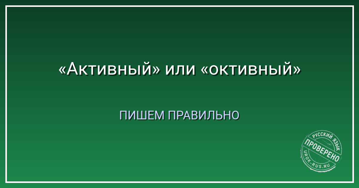 Коротко: слово «активный» пришло из латинского «activus» (деятельный). В латыни приставка «act-», в русском — «акт». Никакого «о» там нет. Пишем «активный» через «а». «Октивный» — ошибка, потому что приставки «ок-» не существует. Слово словарное, проверочных нет. Запомните: только «а».