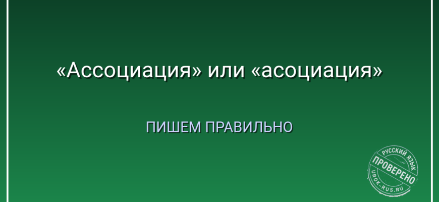 Слово «ассоциация» пришло из латинского (associatio — «соединение»). В латыни — две «s». В русском мы сохранили это удвоение. Если-то вы напишете «асоциация», представьте, что вы разорвали связь между двумя частями слова. Нелепо, да? Кстати, есть слова-близнецы: «ассистент», «ассортимент», «ассамблея» — в них тоже двойная «с». Закономерность: латинская приставка «ad-» перед корнем на «s» даёт удвоение.