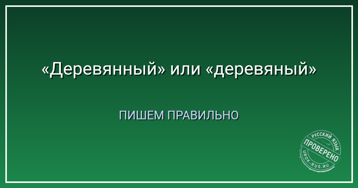Проблема в том, что люди забывают об исключениях и пишут «деревяный» по общему правилу. Но нужно запомнить три слова: деревянный, стеклянный, оловянный. Все они пишутся с двумя Н.