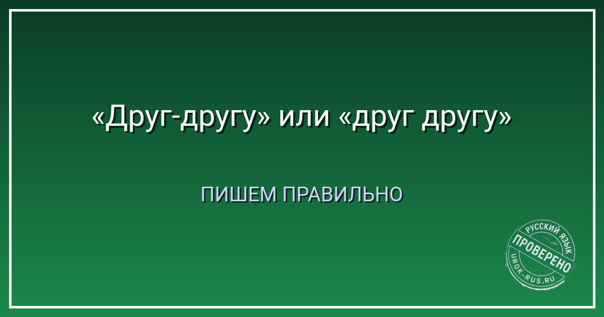 Удивительно, но факт: устойчивое сочетание «друг другу» пишется без дефиса. Раздельно. Друг и другу — это два слова, которые обозначают взаимное действие. Они не слились в одно, как, например, «кое-кто» или «как-нибудь».