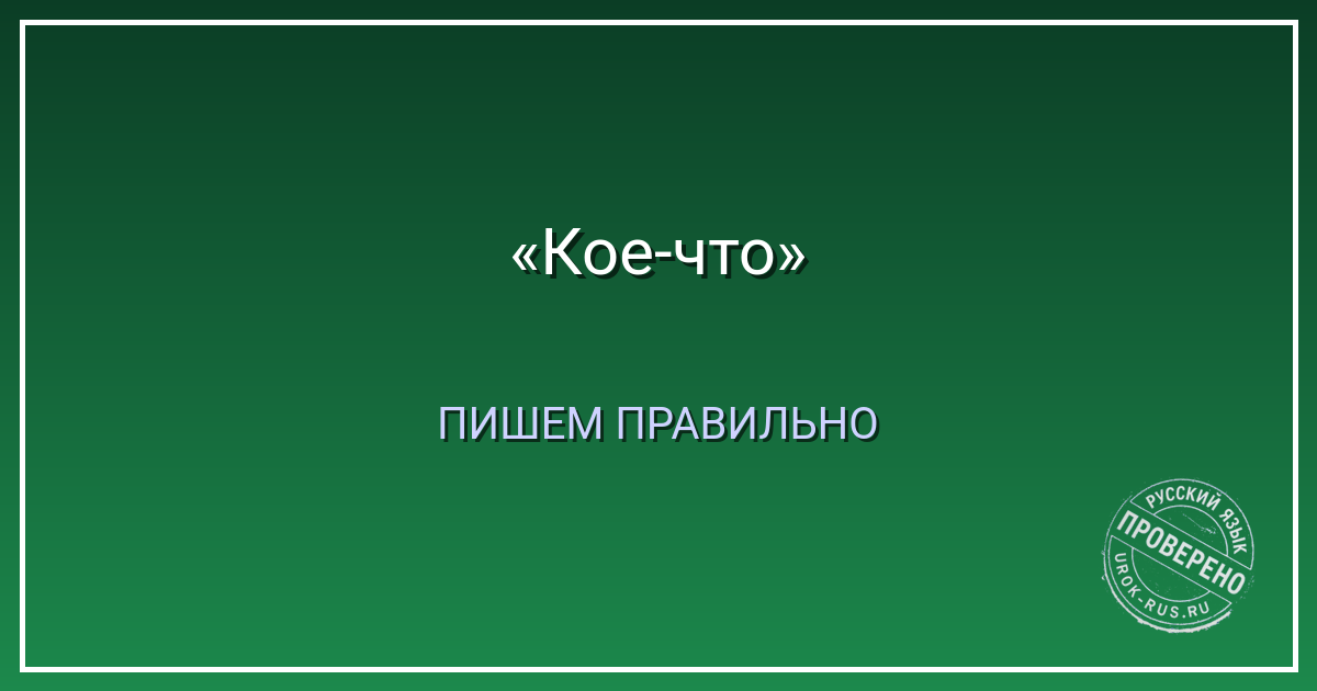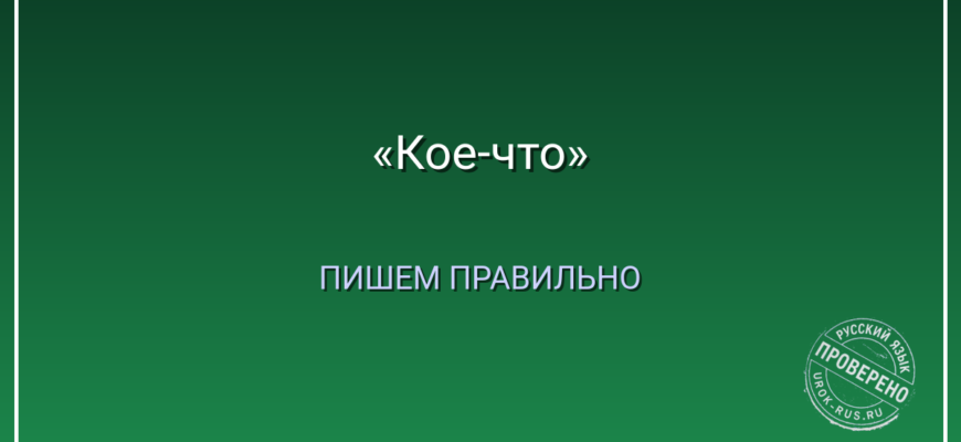 Вспомните слово «кое-кто». Оно точно пишется через дефис. А «кое-что» — по той же модели. Если сомневаетесь, замените «что» на «кто». «Кое-кто» — дефис есть, значит, и «кое-что» с дефисом. Работает безотказно.
