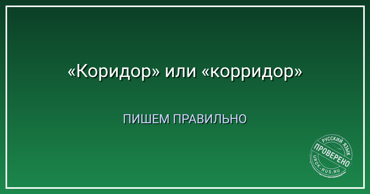 Проверьте себя: напишите «коридор» с одной «р» пять раз. Запомните зрительно. И больше никогда не пишите «корридор».