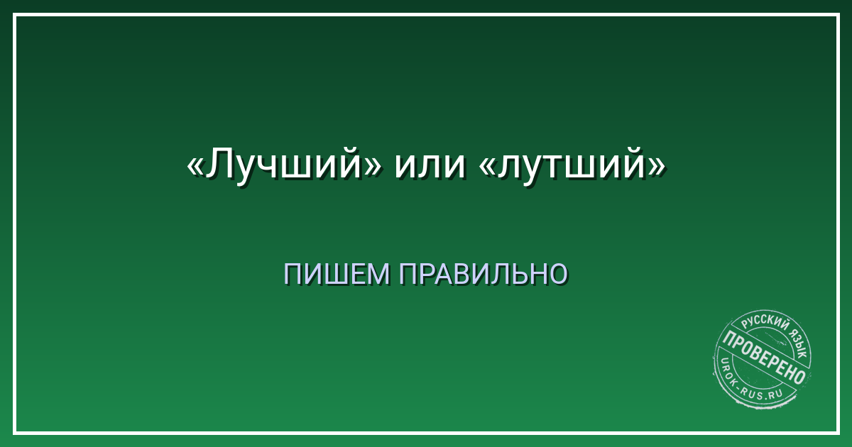 Слово «лучший» образовано от прилагательного «хороший» с помощью чередования Х//Ш в корне. Сравнительная степень — «лучше», превосходная — «лучший». Буква Т здесь не нужна. Ошибка «лутший» возникает из-за ложной аналогии с «лучше» (где нет Т). Если-то правило: запомните пару: хороший — лучше — лучший. Без Т.