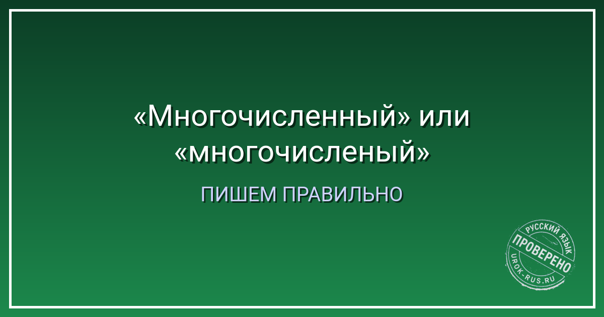 Как запомнить? Вспомните слово «численный» (как в «численный состав»). Оно пишется с двумя «н» — численный. «Многочисленный» — то же самое, только с приставкой «много-». Если вы напишете «численый» — это будет ошибка. Значит, и «многочисленый» — ошибка. Держите в голове цепочку: число → численный → многочисленный. Везде две «н». Ещё проще: мысленно уберите «много-». Останется «численный» — и всё становится ясно.