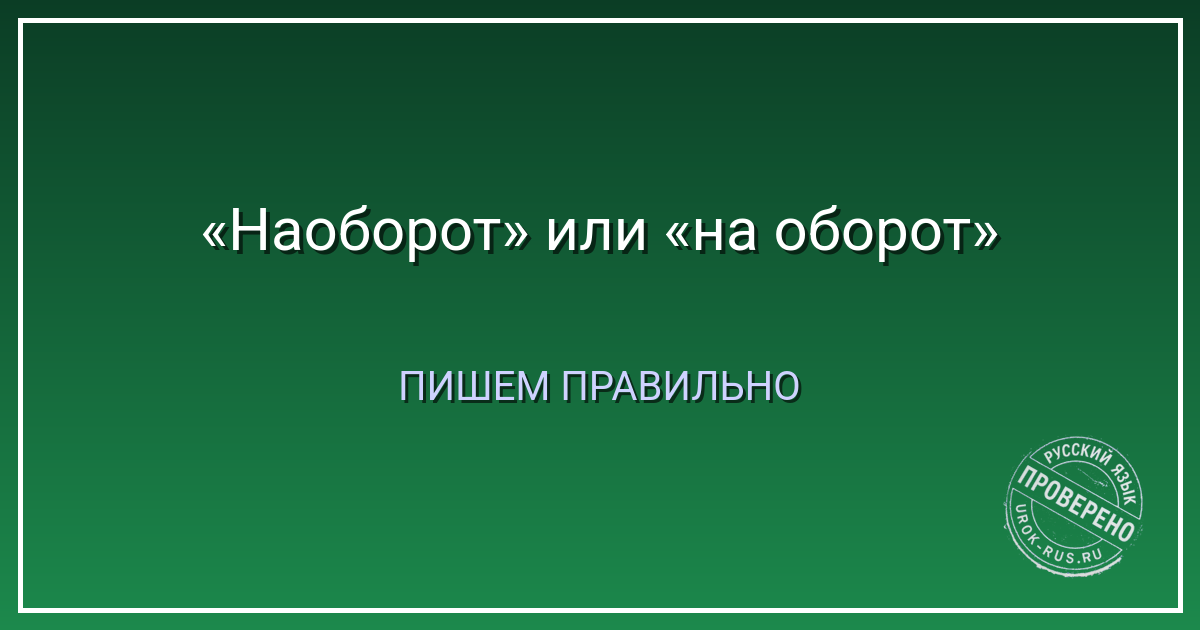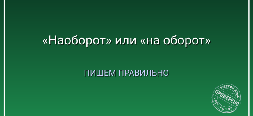 Важно: «на оборот» (раздельно) и «наоборот» (слитно) — это разные слова с разным значением. Не путайте их.