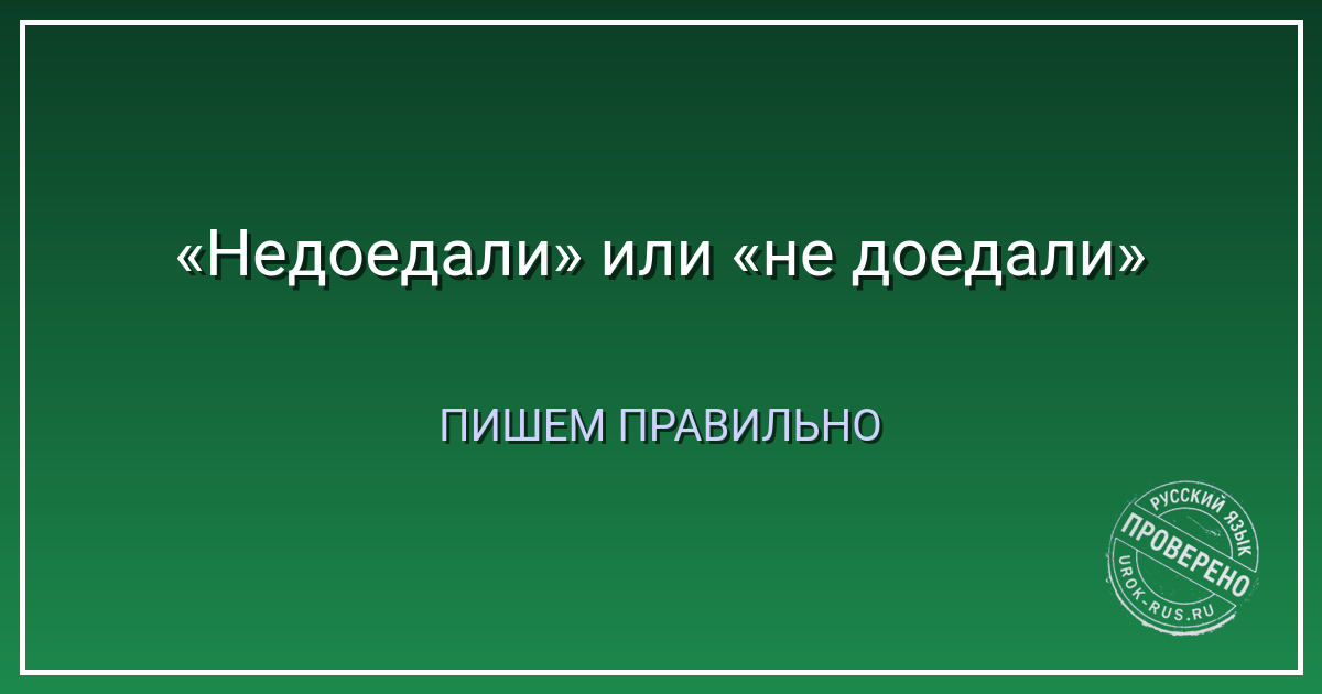 Практическое упражнение: напишите три предложения со слитным «недоедали»: «В блокаду люди недоедали», «Котёнок недоедал и худел», «Из-за бедности они недоедали». И три с раздельным «не доедали»: «Они не доедали пирог, оставили кусок», «Дети не доедали кашу каждый день», «Я не доедал обед, потому что торопился». Теперь вы никогда их не перепутаете.