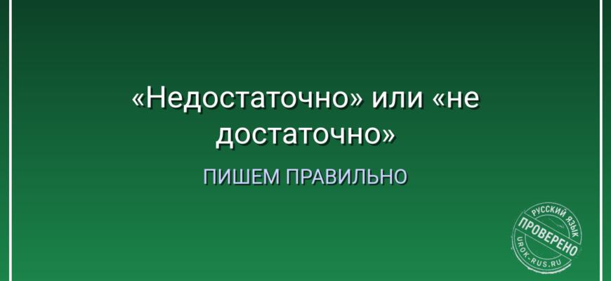 Проверка: «недостаточно» можно заменить на «не хватает» (глагол) или «мало». Если замена работает — слитно. Запомните: «недостаточно» — это как «нехорошо», «некрасиво». Тоже слитно, когда нет противопоставления.