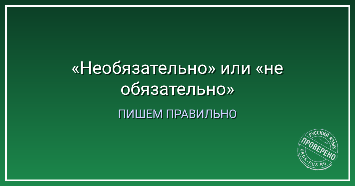 Второй способ — задайте вопрос. Если можно спросить «как?» и ответить «необязательно» — слитно. Если чувствуете, что между НЕ и ОБЯЗАТЕЛЬНО можно вставить слово («не совсем обязательно») — то раздельно. Но вставка слова возможна только при раздельном написании.