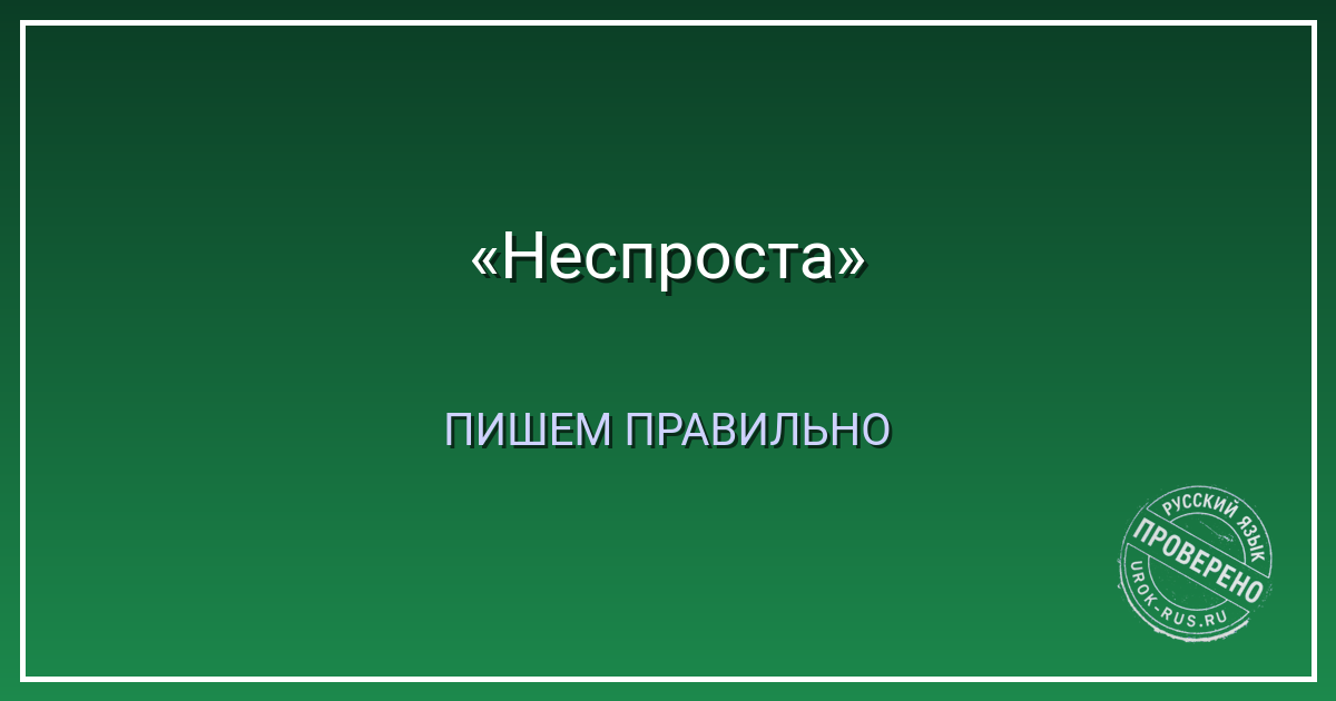 Практическое упражнение: напишите три предложения со словом «неспроста». «Она неспроста улыбнулась». «Ты неспроста пришёл так рано». «Неспроста я тебя предупреждал». Теперь попробуйте написать их раздельно — «не спроста». Чувствуете, как теряется цельность? Потому что это ошибка. Привыкайте к слитному написанию, и скоро вы перестанете замечать саму проблему.