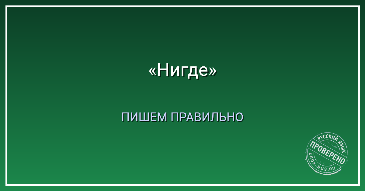 Проверьте себя: напишите «нигде» пять раз слитно. Запомните, что это наречие. И больше никогда не пишите «ни где».