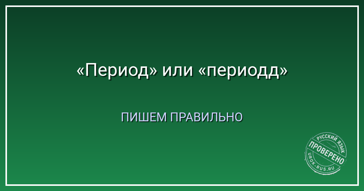 Правильно писать только так: «период» — с одной буквой «д» на конце. Слово пришло из греческого (periodos — «круг», «обход»), где на конце была одна «д» (через греческую дельту). В русском языке удвоение не закрепилось. Запомнить проще простого: «Один период — одна буква „д“. Два периода — две „д“, но это уже множественное число». Или используйте ассоциацию: слово «метод» пишется с одной «д» — и «период» по аналогии. Ещё вариант: проверьте через прилагательное «периодический» — там одна «д» в корне.