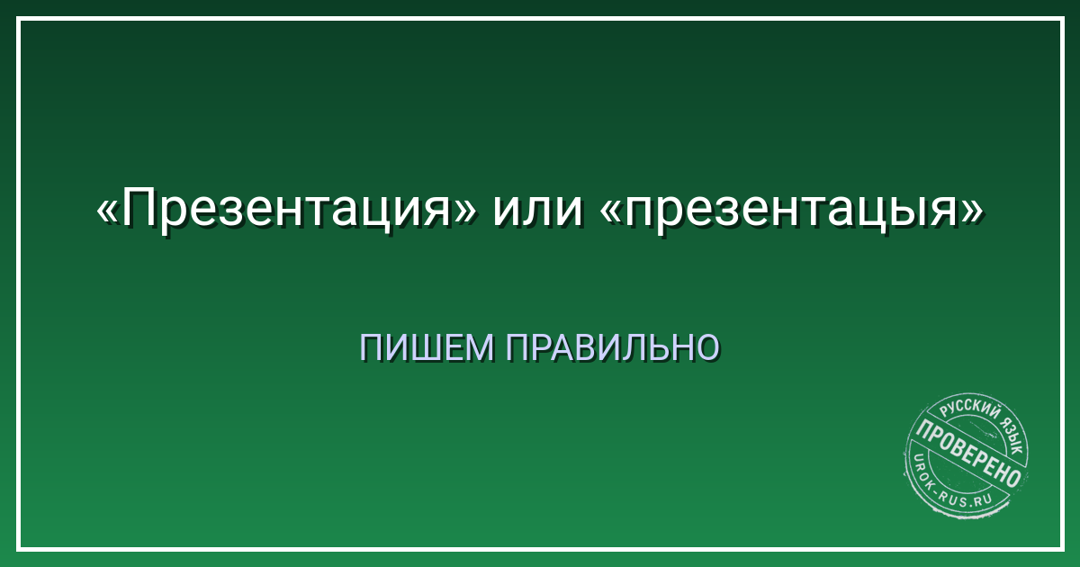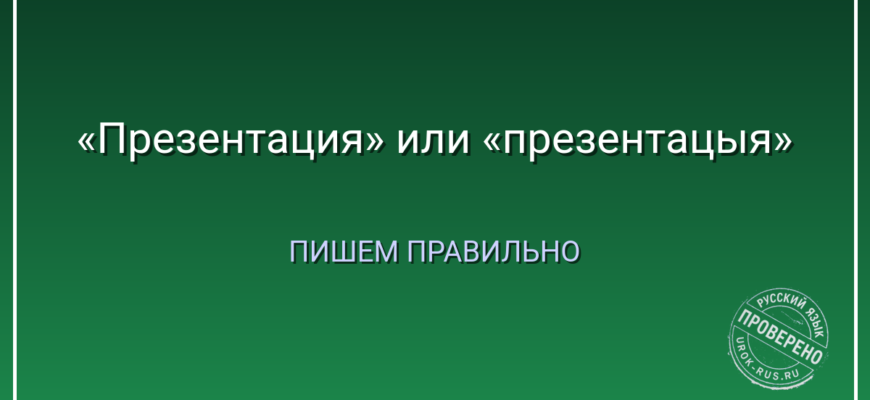 Авторская ремарка: я сам однажды в студенчестве написал «презентацыя» на титульном листе. Преподаватель сказал: «Презентация с буквой «и» — потому что она идёт к истокам латыни. А «презентацыя» — это как «цыганка с бубном»». С тех пор я запомнил.