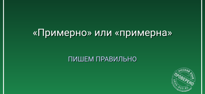 Я использую простой тест. Задайте вопрос к слову. Если можно спросить «как?» — пишите «примерно». Если «какова?» — «примерна». Второй способ: замените слово на «приблизительно». Если замена подходит — это наречие «примерно». Если можно заменить на «образцова» — это краткое прилагательное «примерна».