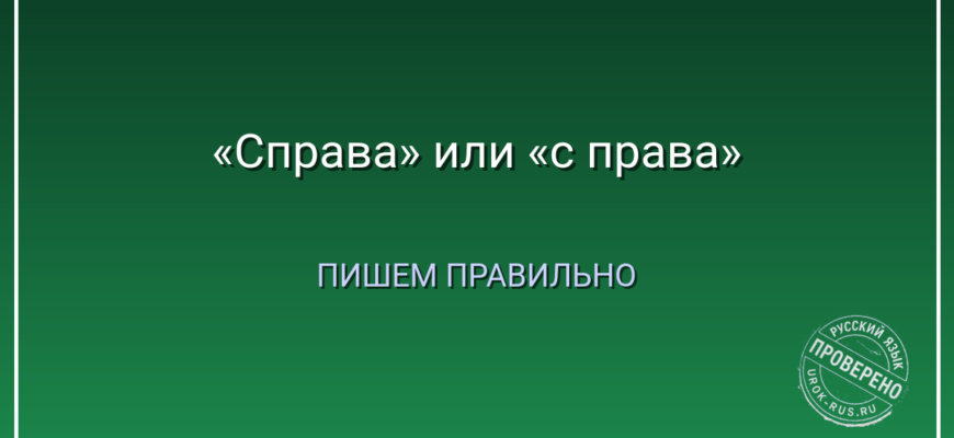 Ошибка «с права» возникает по аналогии с предложно-падежными сочетаниями вроде «с боку», «с краю», «с разбегу». Там «с» действительно предлог, и пробел нужен. Но «справа» — это наречие места, отвечающее на вопрос «где?» или «куда?». Запомните: если вы можете задать вопрос «откуда?» и получить ответ «справа» — это наречие, пишите слитно. Пример: «Ветер дул справа» (откуда? — справа). Нельзя сказать «с права» в этом контексте.