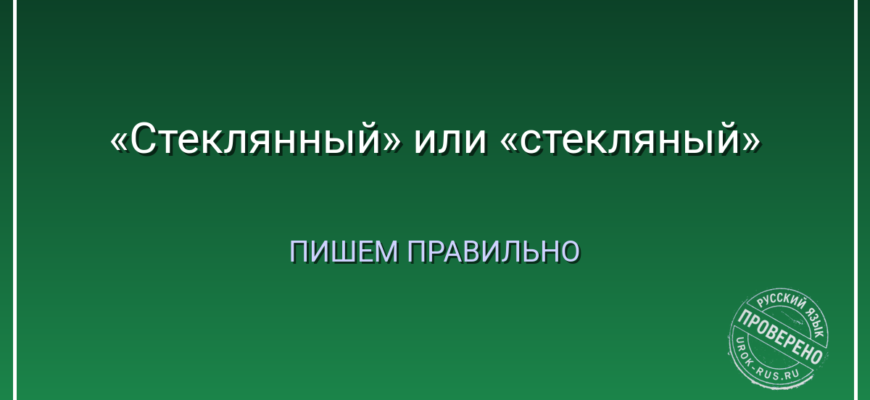 И ещё: слово «стеклянный» часто путают с «стекольный» (относящийся к стеклу как материалу: стекольный завод, стекольная промышленность). «Стекольный» пишется с одной Н, потому что суффикс -н- (стекл-о + -н-). Это не исключение.