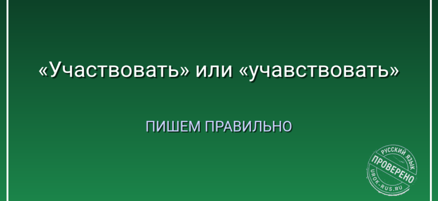 Глагол «участвовать» пишется без буквы «в» в корне. Проверочное слово — «участие». В слове «участие» нет «в», значит, и в «участвовать» нет «в». Никакого «учавствовать» не существует. Примеры: «Я хочу участвовать в конкурсе», «Он участвует в марафоне», «Мы будем участвовать в проекте». Запомните: участвовать = иметь участие. Без лишних букв.