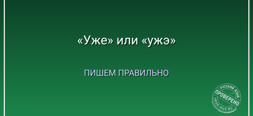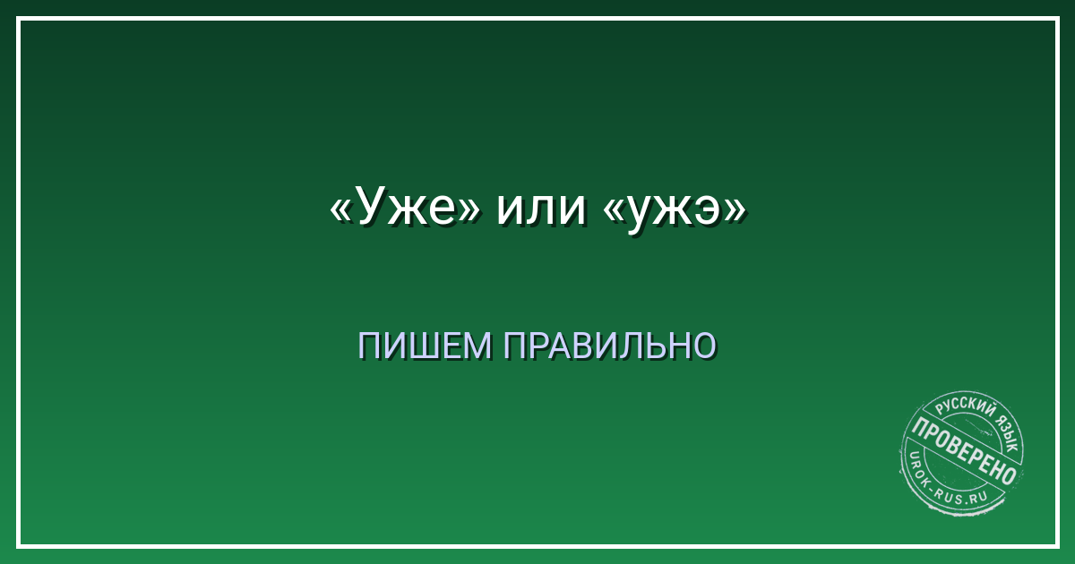 Представьте, что «уже» — это короткое слово, которому не нужны излишества. Если вы напишете «ужэ», то логично было бы писать «тожэ», «какэ», «чэ» — абсурд же. Я своим читателям даю такую установку: мысленно добавьте слово «всё» перед «уже». «Всё уже» — буква «е» на месте. Или вспомните фразу из мультфильма: «Ужэ не то, чэ раньшэ» — звучит по-идиотски? Вот именно. Потому что правильно «уже не то, что раньше».