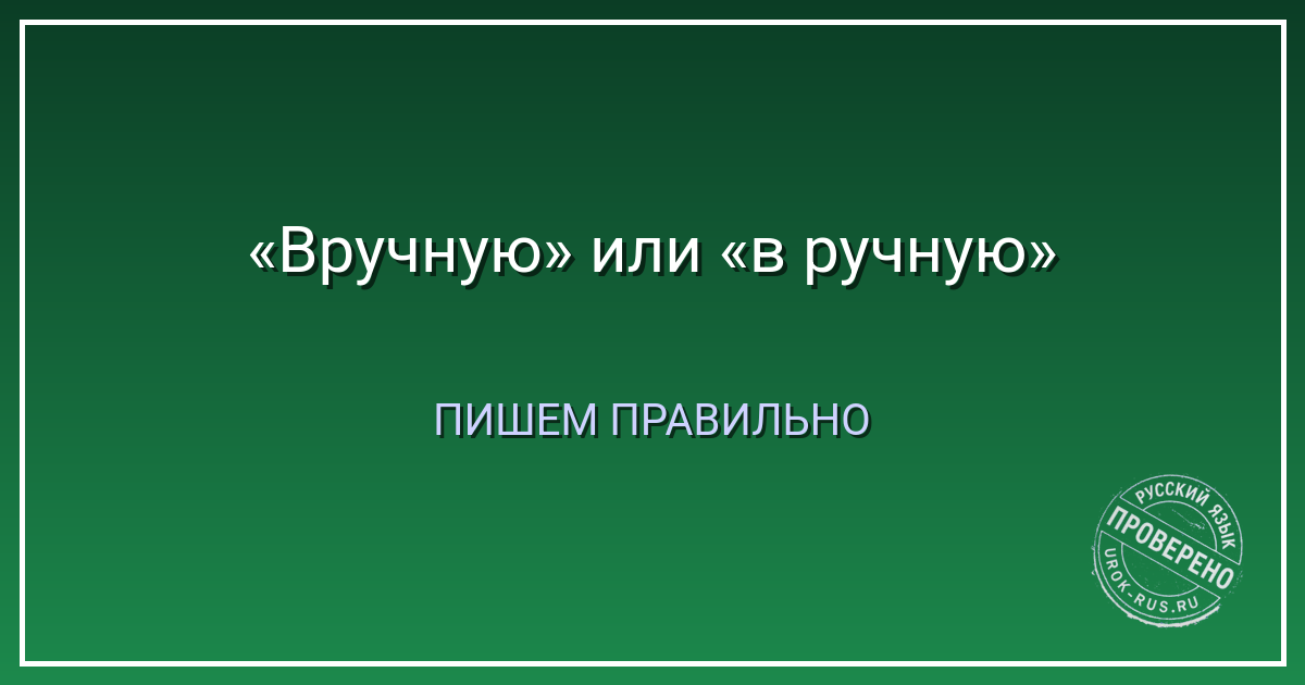 Авторская ремарка: я сам путал, пока не запомнил: «Вручную — руками. В ручную — в какую? В ручную сумку».