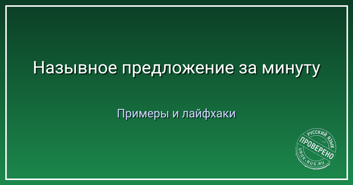 Как их отличить от неполных или других односоставных? Запоминайте лайфхак: задайте вопрос «где? когда? что?» — если ответ есть, а «кто делает?» не подходит, это назывное.