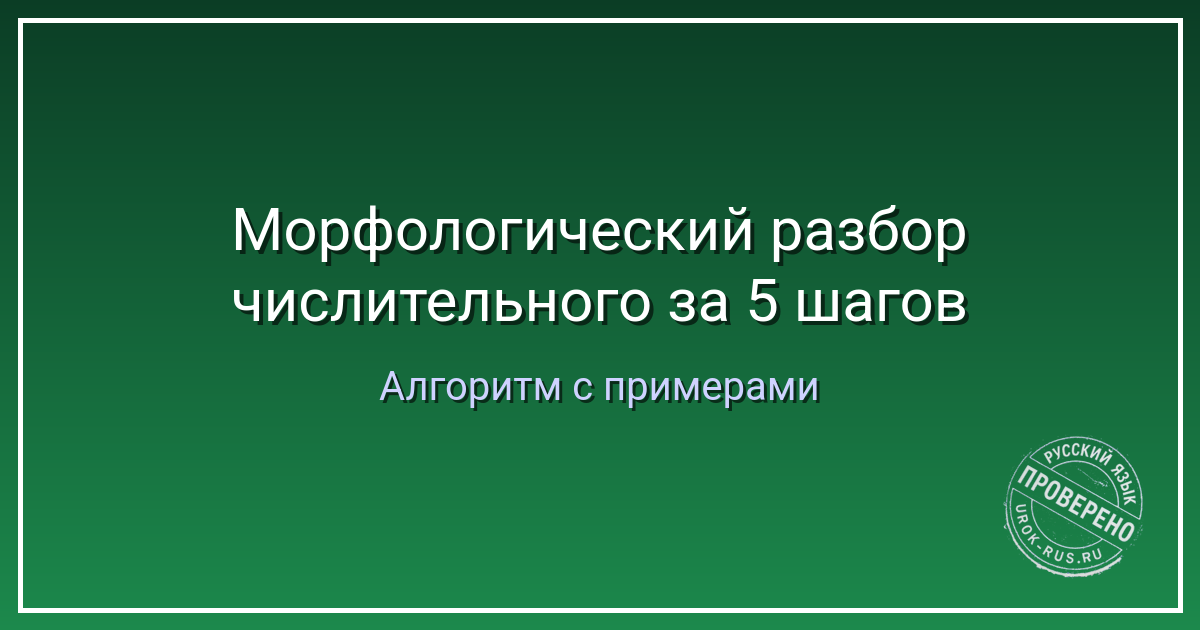 У количественных числительных определяем падеж, род (только для слов «один», «два», «оба», «полтора») и число (только для «один», у остальных числа нет). «Три»: падеж — винительный (вижу что? три яблока), род и число не определяем, потому что у «три» их нет. У порядковых числительных определяем падеж, род и число как у прилагательных. Сравните: «пятый день» (мужской род, единственное число, именительный падеж). Авторская ремарка: самое сложное — склонение числительных «полтора» и «полтораста». Запомните раз и навсегда: именительный и винительный — «полтора», остальные — «полутора». «Полтораста» — именительный и винительный, остальные — «полутораста». Повесьте эту табличку над рабочим столом.